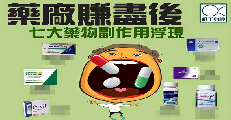 事實是,就算不少藥物真的很危險,藥廠也不會告訴你,因為製藥企業要賺大錢。美國獨立媒體Alternet有文章指出,有七種處方藥物的副作用被低......