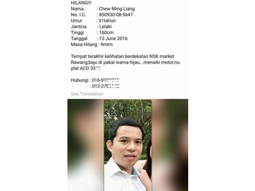 死者家屬在失蹤后希望透過網民的力量尋找他下落,孰料最終接獲的卻是死訊。